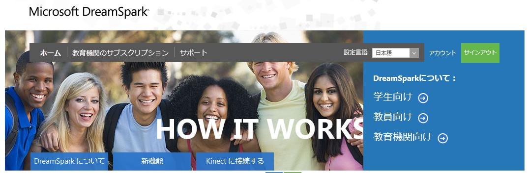 認証が成功すればサインインされた状態でDreamSparkの画面になります。