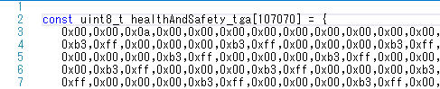 SDK 0.4.2 の該当ファイルをエディタで見たところ、TGA形式のデータを単に羅列しているようです。